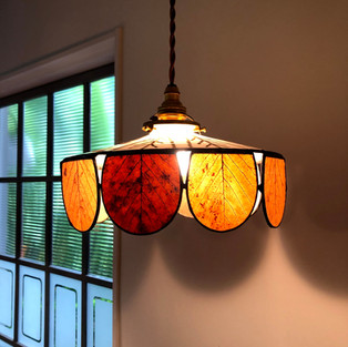 秩父の落ち葉でつくった照明器具のサンプルをお借りして我が家に飾ってみました。