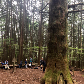 大きな杉の木のある 大杉の広場で休憩し、そして解散。